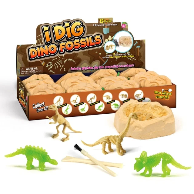 Wer befreit die Dinosaurier aus ihrem Ei? Mit dem Meißel geht es dem Gips-Ei an den Kragen, bis eine von 12 Dino-Figuren oder andere Fossilien befreit sind. Vom im Meer lebenden Plesiosaurus bis zum gehörnten Triceratops die Dinos lösen ein richtiges Sammelfieber aus! Mit dem beiliegenden Werkzeug geht es ans Ausgraben, fast wie echte ArchäologInnen.