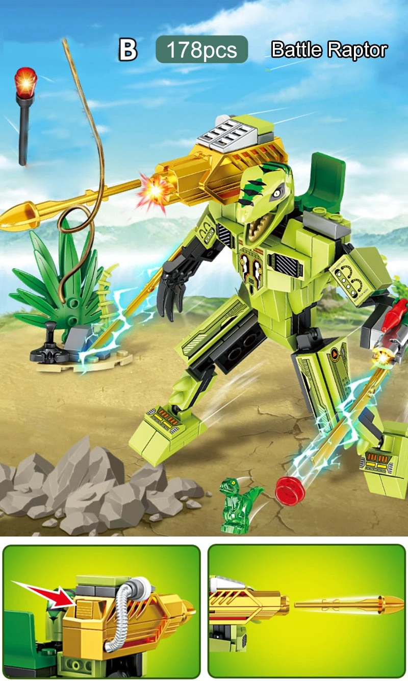 Wenn die Dinosaurier sich damals gegenseitig bekämpft haben, muss es ziemlich heiß hergegangen sein. Du kannst das nun nachspielen und sogar noch eine Stufe drauflegen, denn mit diesem coolen Dinosaurier Roboter Spielbausatz bekämpfen sich keine einfachen Dinosaurier, sondern Dinos, die sich in halbe Kampfroboter transformieren und mit ganz abgefahrenen Waffen sich bekämpfen.