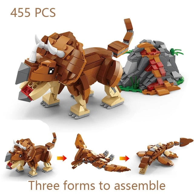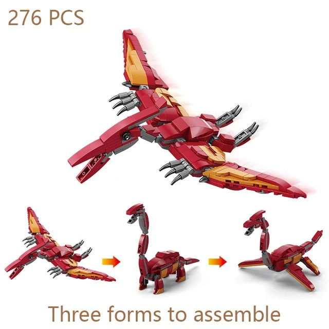 Zur Auswahl stehen verschiedene Dinosaurier. Wenn du dich für eine Art entschieden hast, darfst du ihn aus mehreren hunderten Bausteinen zusammen- und auch nach Lust und Laune in drei verschiedene Dinos umbauen. So lässt sich z.B. aus einem Flugdino ein Langhalsdino oder auch ein Schwimmdino bauen. Wenn das mal nicht eine tolle Abwechslung ist!