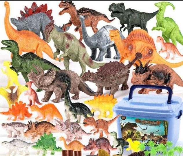 Viele verschiedene Dino Figuren (44 Stk.) inkl. einer stabilen Aufbewahrungsbox. Ein tolle Geschenk für alle kleinen und großen Dino Freunde.