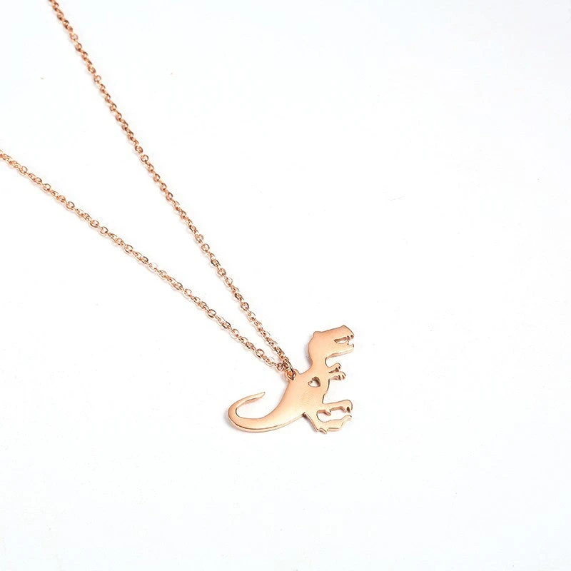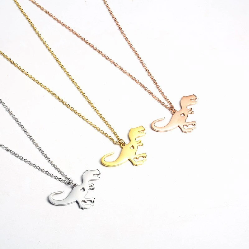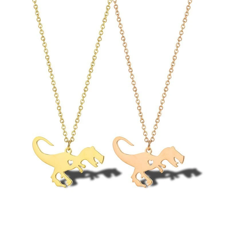 Diese Halskette ist sowohl was für Fans der Jurassic Filme, als auch generell für Menschen mit einem Faible für Dinos. Die Kette stellt nämlich den Fleischfresser T-Rex von der Seite dar. Die Gliederkette besteht aus rostfreiem Stahl und gibt es in drei verschiedenen Farbtönen. So habt ihr die Wahl zwischen den Farben Rose Gold, Gold und Silber. Die Farbe betrifft sowohl die Kette als auch den dazugehörigen Dinosaurier Anhänger.