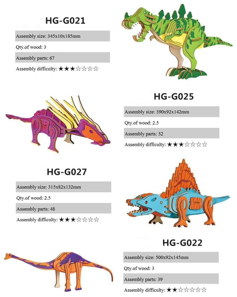 3D Lasergeschnittenes Dinosaurier Holzpuzzle – DIY