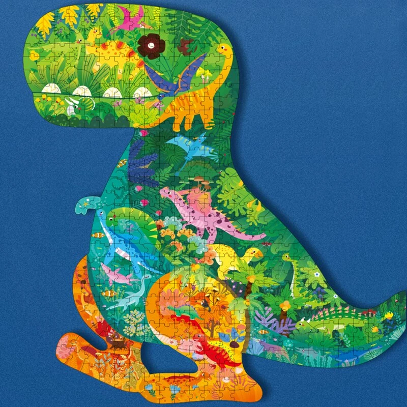 Farbenfroh und in einer außergewöhnlichen Form präsentiert sich dieses tolle Konturenpuzzle. 337 einzelne Puzzleteile werden benötigt und müssen richtig zusammengelegt werden, um diesen fröhlichen Dinosaurier zu formen.