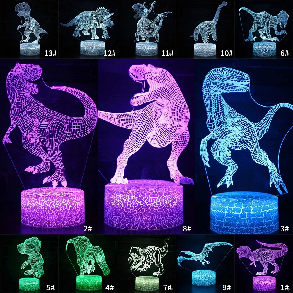 Tolles Nachtlicht mit Farbwechsel, Fernbedienung, 3D Effekt in diversen angesagten Dino Motiven.