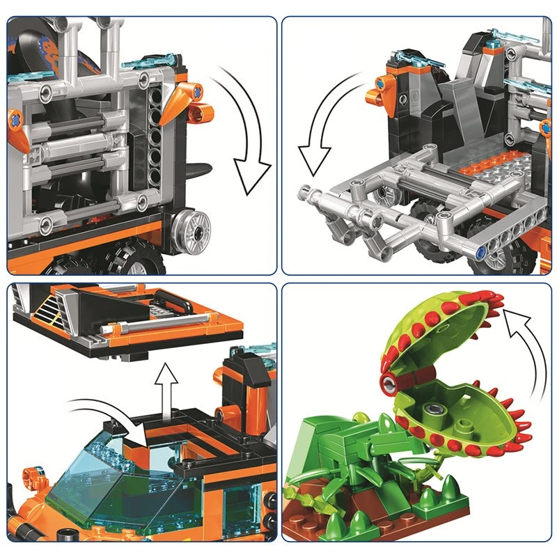 Unser Spielset besteht aus insgesamt 551 verschiedenen Einzelteilen. Hergestellt aus hoch-qualitativen Materialien erstrahlen die Spielfiguren in kräftigem Glanz. Durch die glatten, gut verarbeiteten Oberflächen wird sichergestellt, dass sich niemand beim Spielen verletzt. Unterschiedliche Klappfunktionen beim Aufklappen des Pflanzenkopfes, der Truck-Ladefläche und des Fahrzeugdecks erweitern die Spielmöglichkeiten ungemein. Die wilde Dinosaurierjagd kann somit beginnen!
