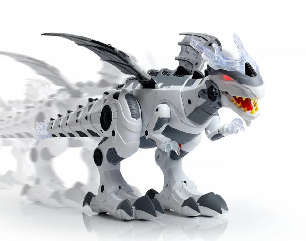 Großer Fantasie T-Rex Dinosaurier mit Licht und Sound Effekten. Während sich der mächtige T-Rex durch das Kinderzimmer bewegt, bewegen sich seine Klauen und Kopf. Verfügbar in Grün und Weiß.
