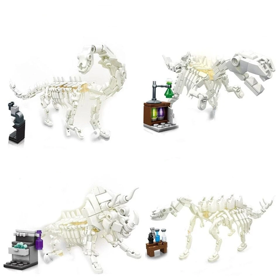 - Großes Spielset: enthält 4 einzelnen Dino-Skelette (Tyrannosaurus Rex, Diplodocus, Stegosaurus, Triceratops) samt vielfältigem Zubehör.
