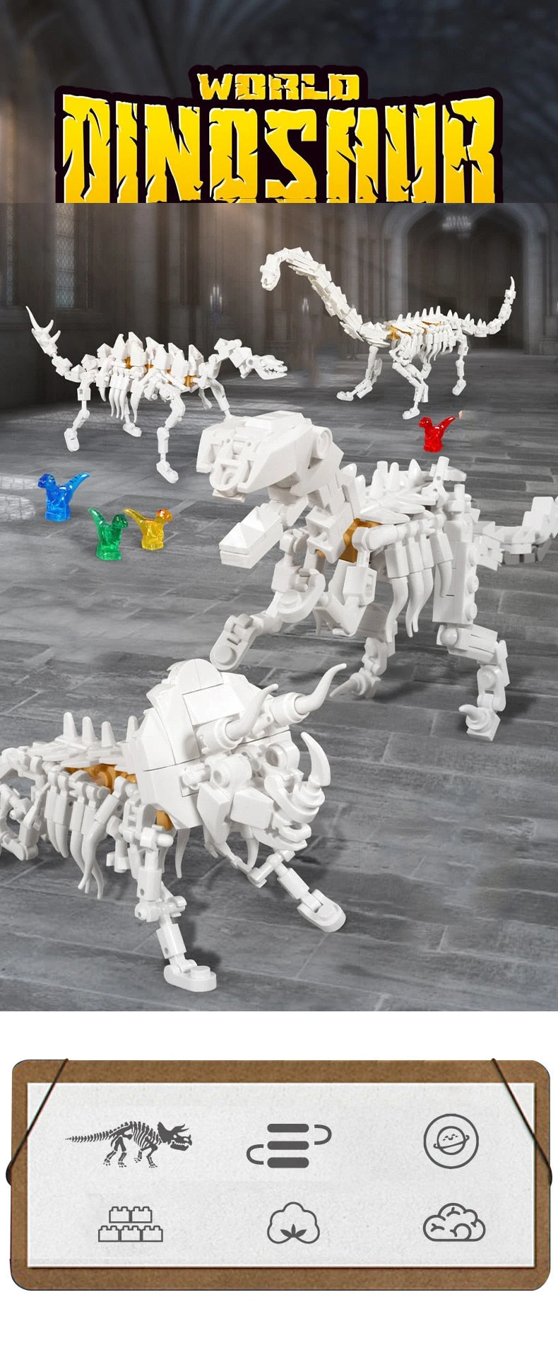 - Kompatibel mit Klemmbausteinen anderer Hersteller – wie zum Beispiel Lego Jurassic World.