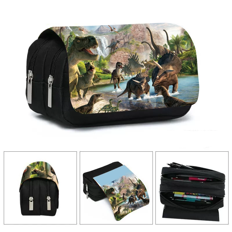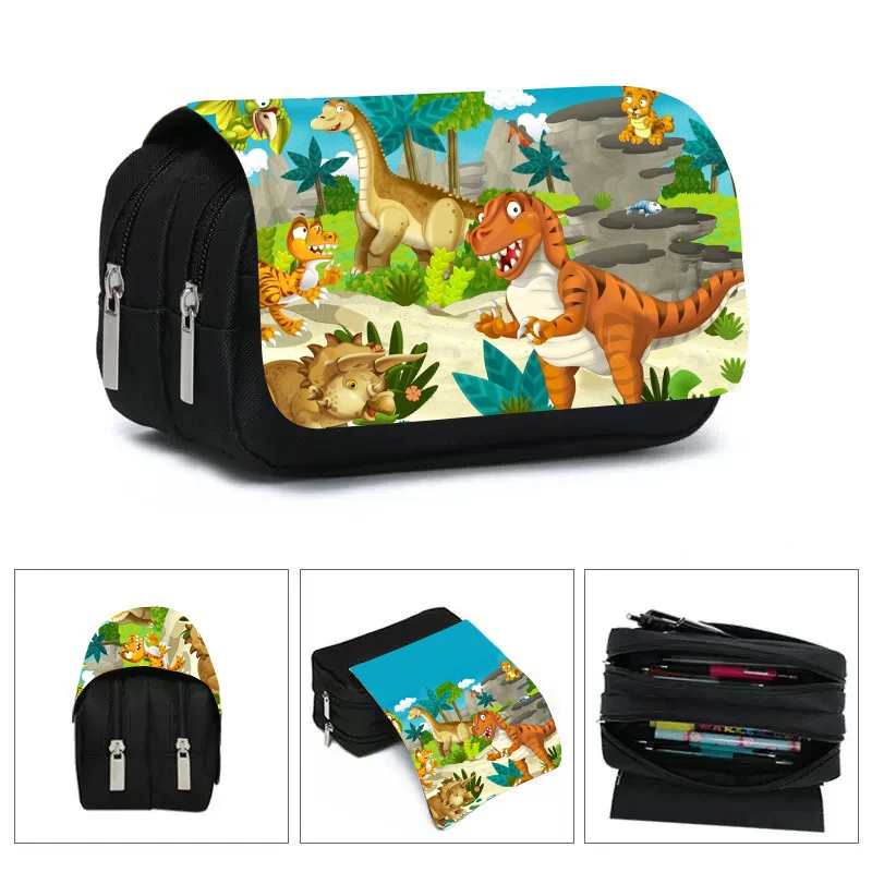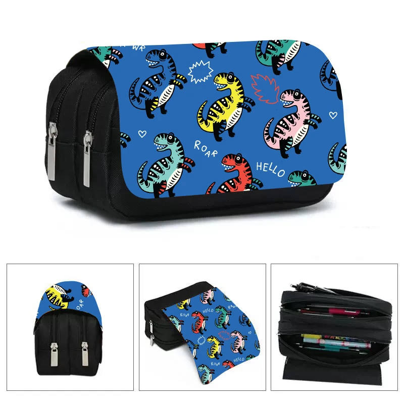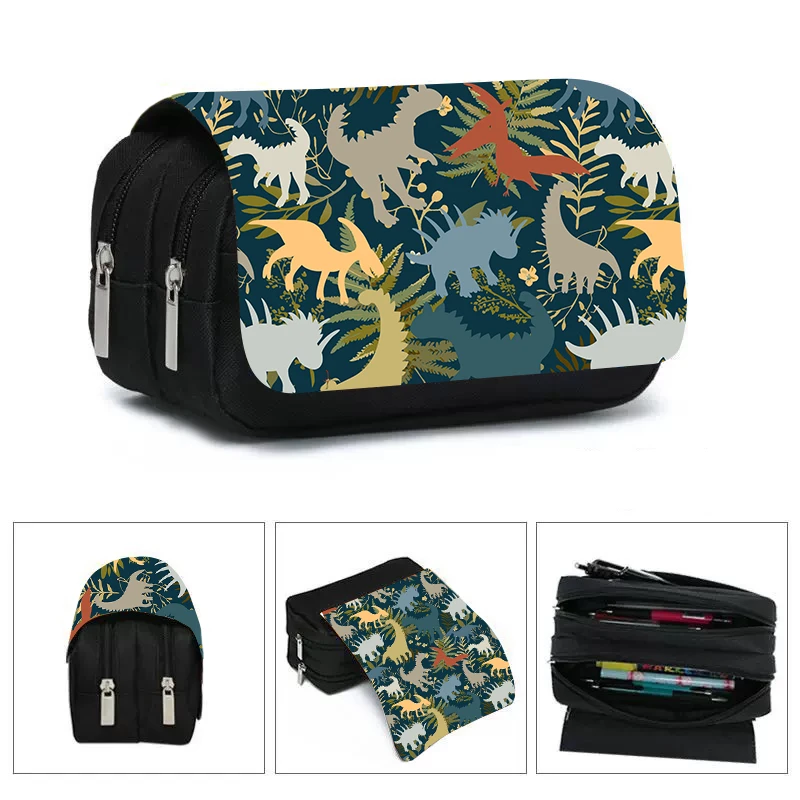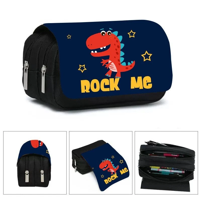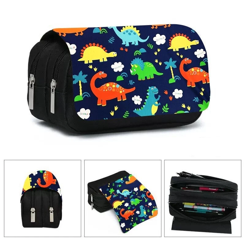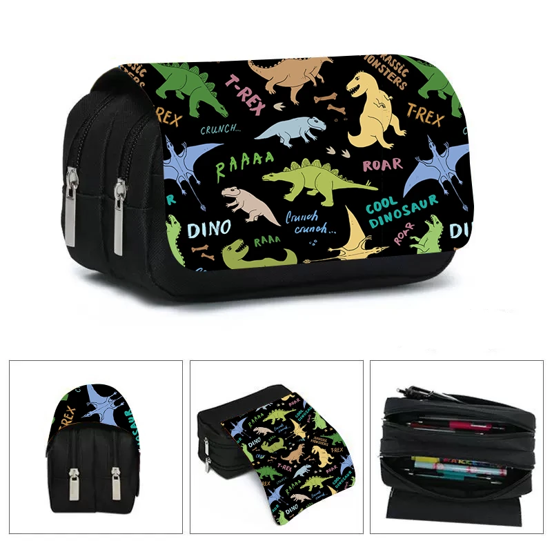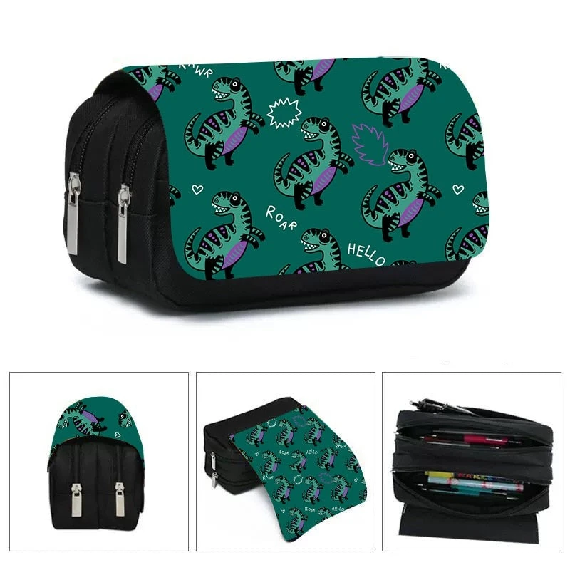 In diesem großen Stifteetui mit Dino-Print bekommst du alles für die Schule unter. Ob Stifte, Schere, Klebestift, Radiergummi, etc. – all diese wichtigen Dinge finden in den zwei großen Fächern ihren Platz.
