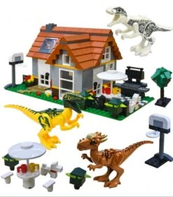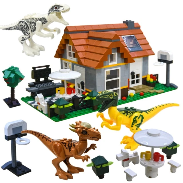 Super Dinosaurier Baustein Set mit kompletten Haus und 4 Dino Figuren. Das Set besteht aus 610 Lego kompatiblen Klemm Bausteinen. Ein tolles Spielzeug für alle Dino Fans.