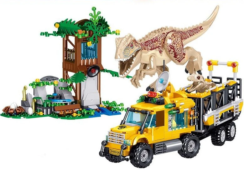 Ideas Jurassic Tyrannosaurus Transport Truck Klemm Baustein Set mit 582 Teilen. Erlebe die Abenteuer aus den Jurassic Park und Jurassic World Filmen im Kinderzimmer nach.