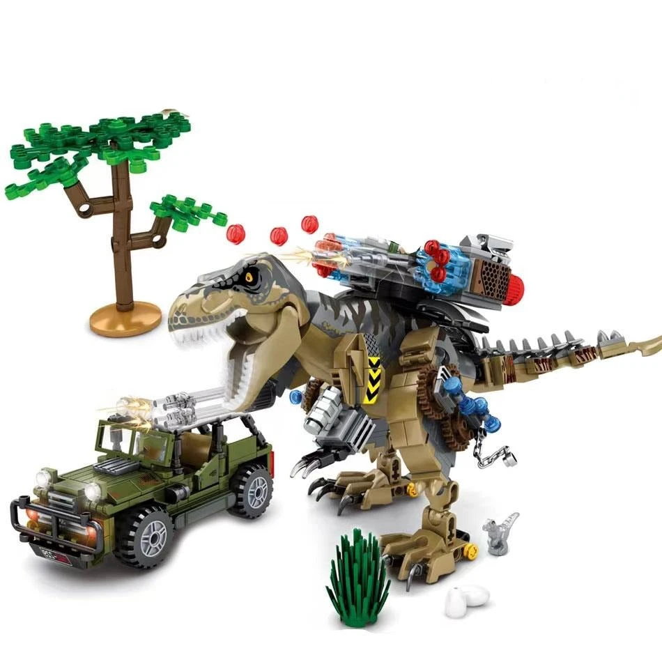 Tyrannosaurus als Kampfdino. Das Baustein Set besteht aus 645 Teilen und würde sich über einen zeitnahen Zusammenbau sehr freuen. Der T-Rex Dino wird mit zusätzlichen Jeep und Figuren geliefert.