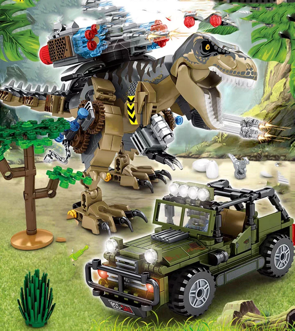 - Detailreiches T-Rex Kampf Dino mit Jeep Set