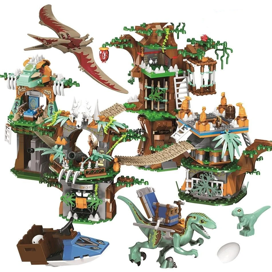 Jurassic World Dinosaurier Baumhaus Baustein Set mit 1000 Bausteinen und Figuren. Ein tolles Baustein Set für alle kleinen und großen Dino Freunde.