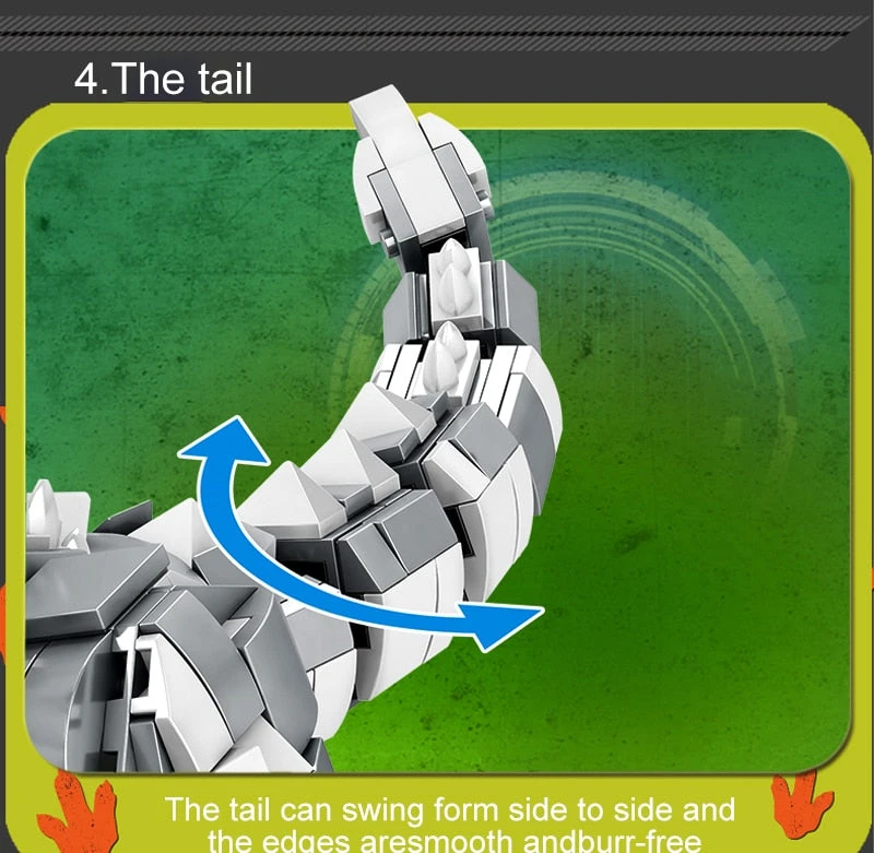 Der Dino ist in zwei unterschiedlichen Farben erhältlich und ist misst zusammengebaut eine Höhe von etwa 23cm und Breite von ca. 44cm. Einzelne Elemente des fertigen T-Rex sind beweglich. So kann beispielsweise der Schwanz nach links und rechts bewegt oder aber der Mund auf und zu gemacht werden. Das Spielzeug eignet sich hervorragend zum Lernen der Feinmotorik, Koordination und Konzentration des Kindes