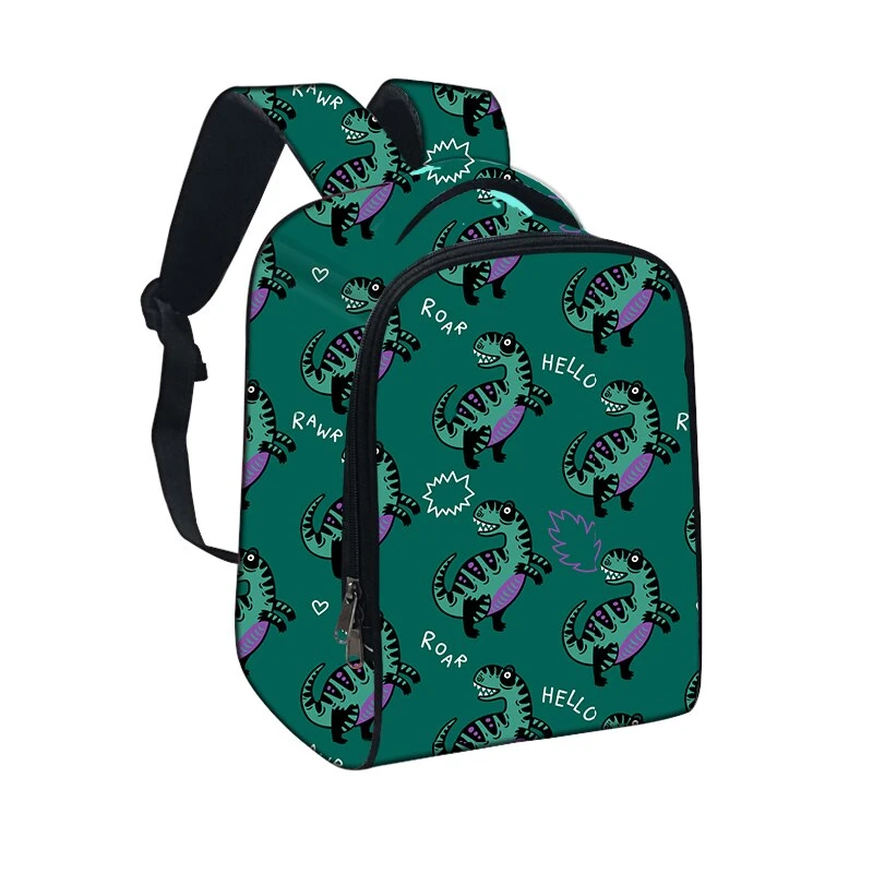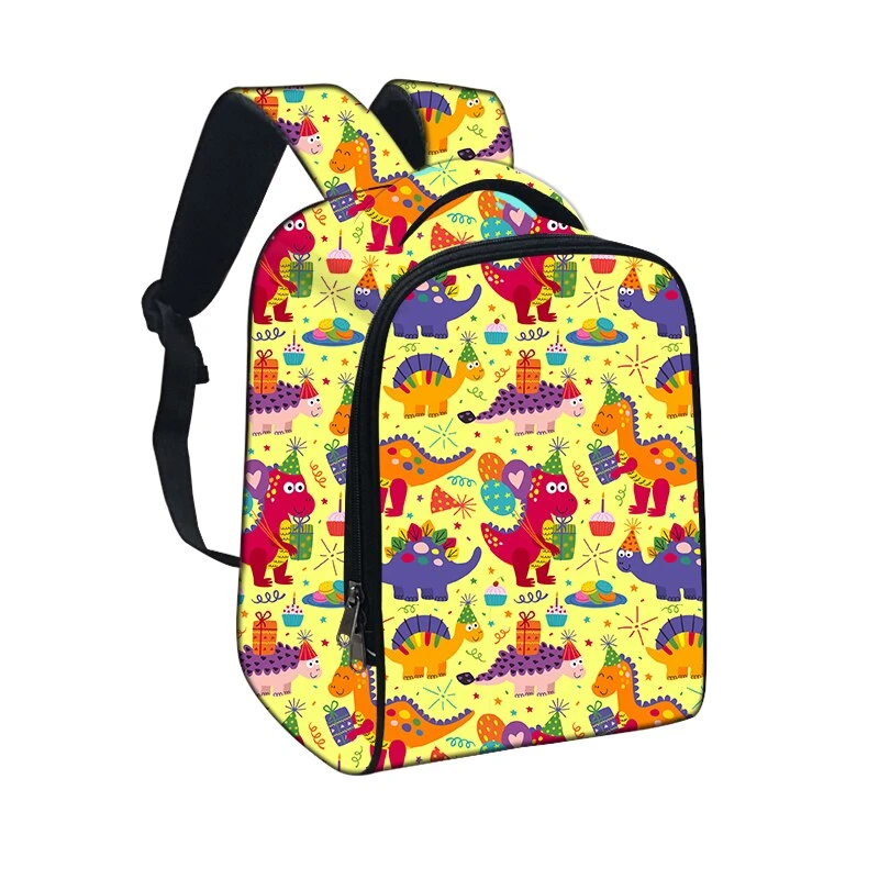 Die Dinos sind los! Auf jeden Fall auf deinem neuen Kindergarten Rucksack mit bunten Dinosaurier Print.