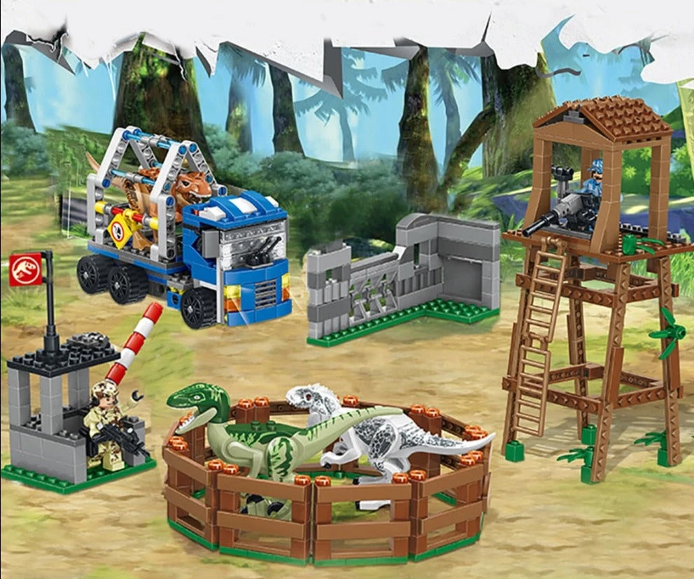 Dieses große Konstruktionssbauset beinhaltet unzählige coole Funktionen und lässt junge Dinosaurier Fans Actionszenen aus den Jurassic World Filmen nachstellen. Hier werden Raptoren festgehalten und bewacht. Zwei bewaffnete und mit Walki-Talki ausgestattete Soldaten passen auf, dass die gefährlichen Dinosaurier nicht ausbrechen.