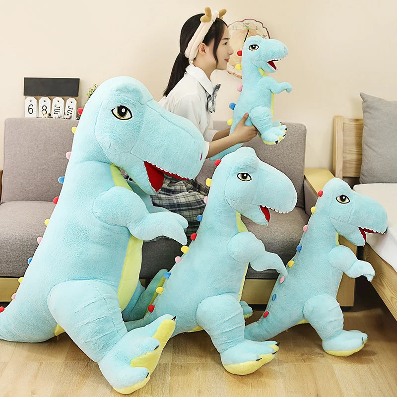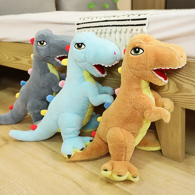 Der Tyrannosaurus Rex, in Kurzform T-Rex genannt, ist uns eigentlich als schauriger Dinosaurier bekannt. Doch dieses Mal haben wir den T-Rex als liebevolles Kuscheltier für euch und er sieht überhaupt nicht furchterregend aus. Nein, ganz im Gegenteil mit seinen bunten Stacheln auf dem Rücken sieht er einfach nur zum Verlieben aus. Den Dino gibt es in den Farben Grau, Hellblau und Orange.