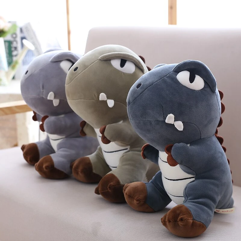 Unsere coole Dino Gang mit dem verschmitzten Lächeln ist in 3 verschiedenen Farben verfügbar und ca. 37cm groß.