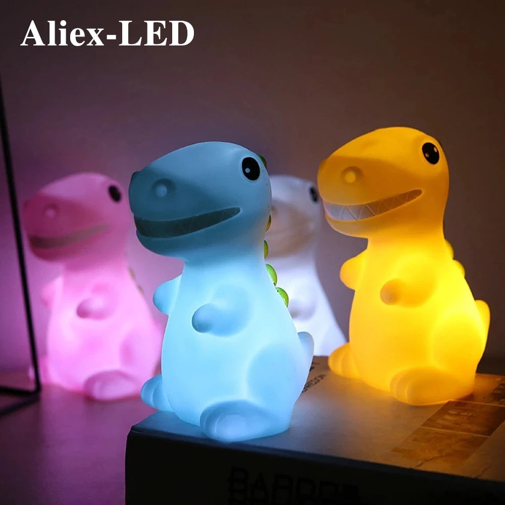 14.5 cm*8 cm*10 cm großen Nachlichter im niedlichen Dinosaurier Look sind die ideale Ergänzung für jedes Kinderzimmer. Erhältlich in 4 verschiedenen Farben. Benötigt werden 3x AA Batterien welche nicht im Lieferumfang enthalten sind.