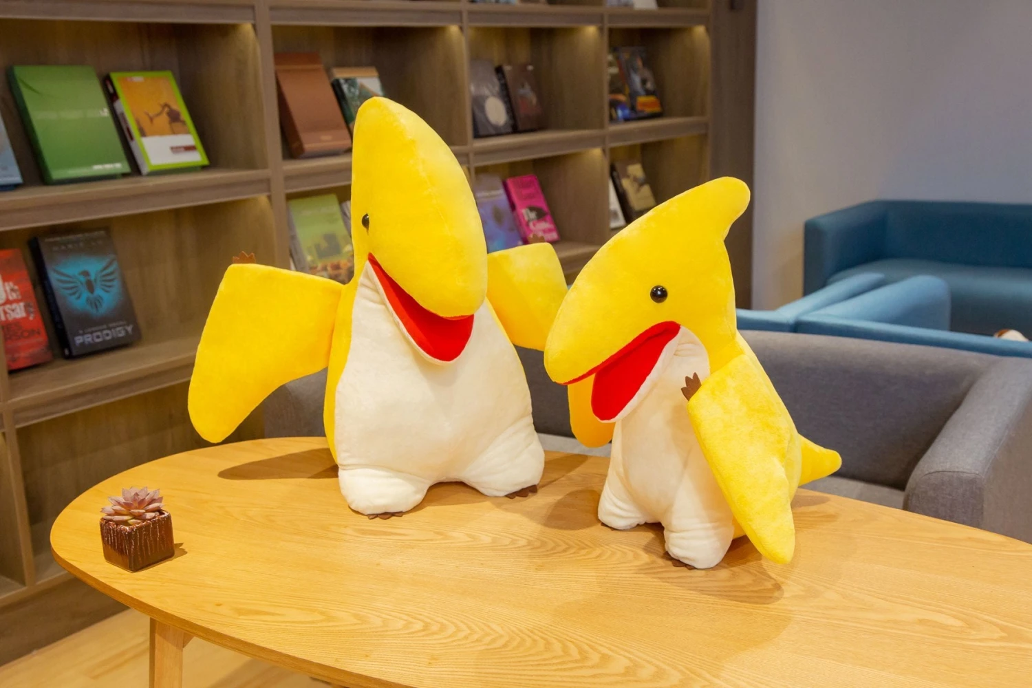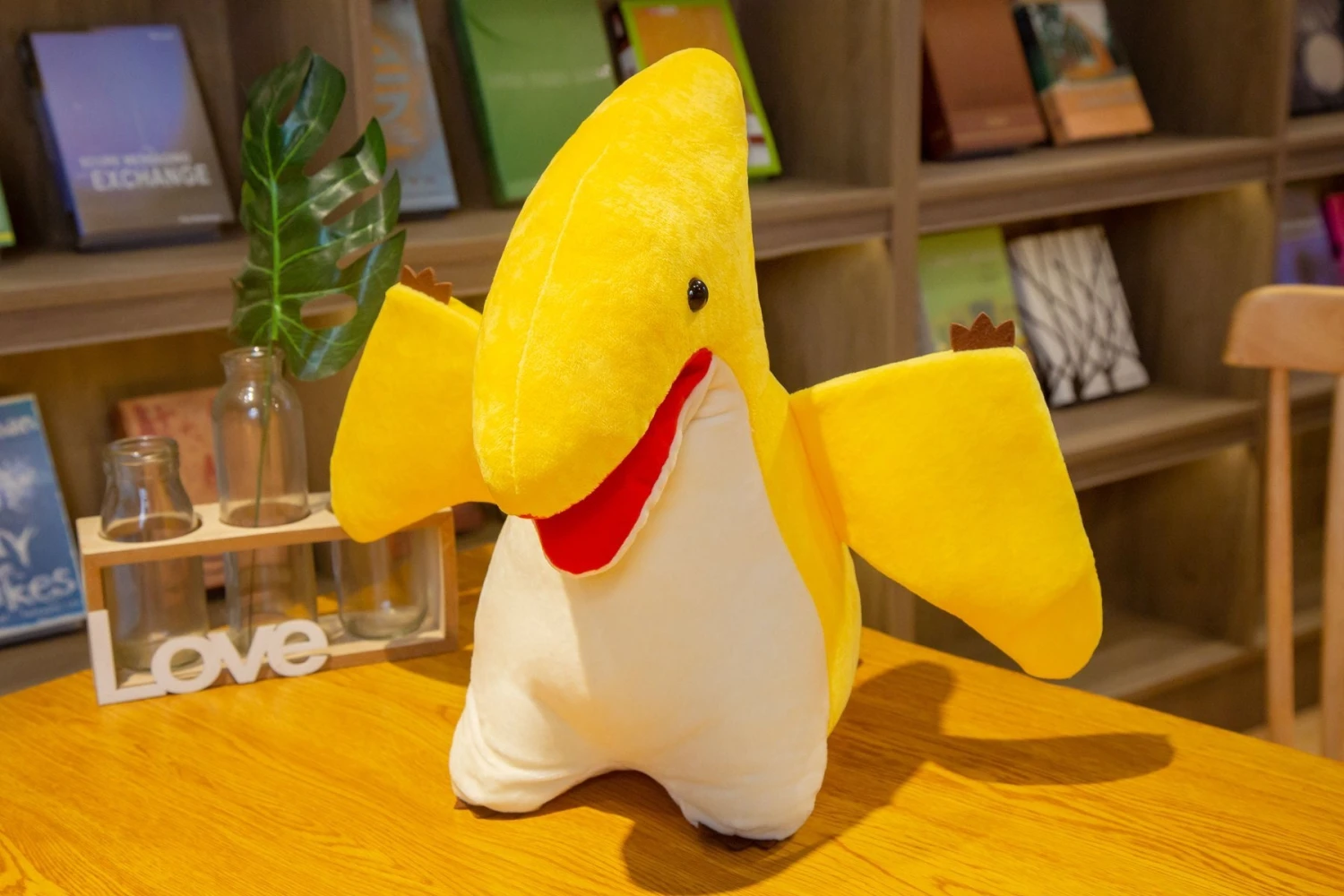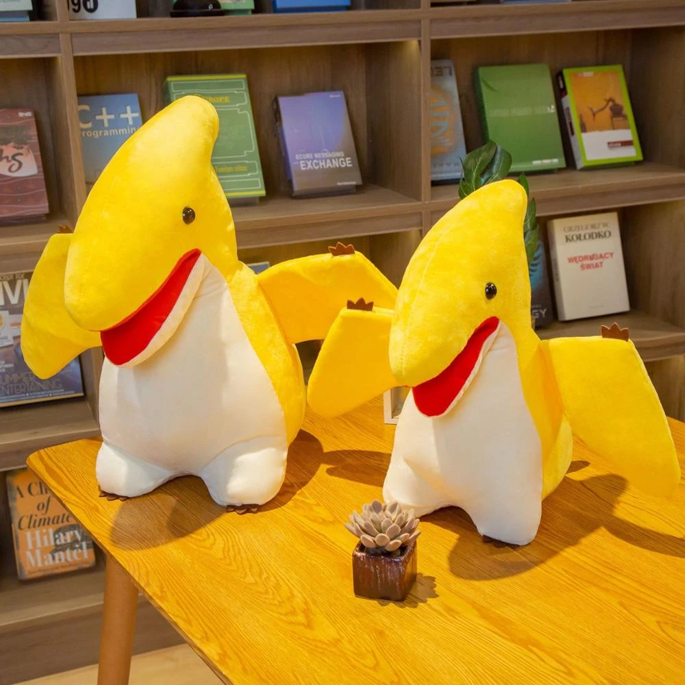 - Das Pterodactylus-Kuscheltier ist in zwei Größen (38 und 48 cm) erhältlich und gefüllt mit PP Baumwolle.