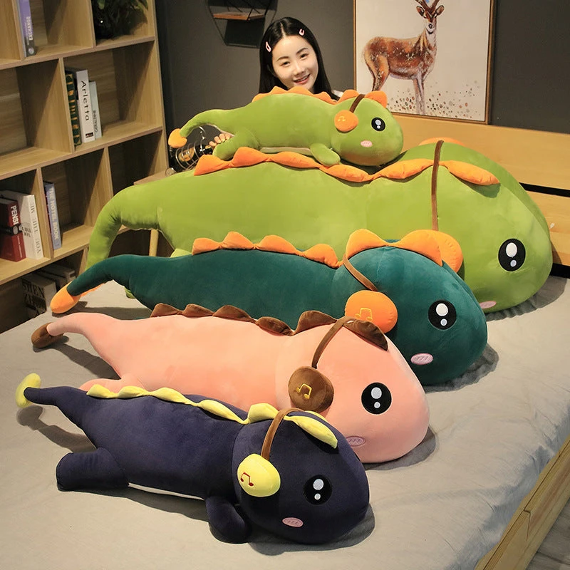 Dieser Dinosaurier sorgt im Kinderzimmer für eine gemütliche Atmosphäre, denn der kuschelweiche Dino liegt mit allen vieren auf dem Bauch, sodass man es sich auf diesem bequem machen kann. Perfekt zum relaxen und ausruhen daheim. Der Dino besteht aus weichem Plüschmaterial und gibt es in drei verschiedenen Größen. Auch hinsichtlich der Farbe kann man zwischen Pink, Grün, Blau und Lila auswählen.