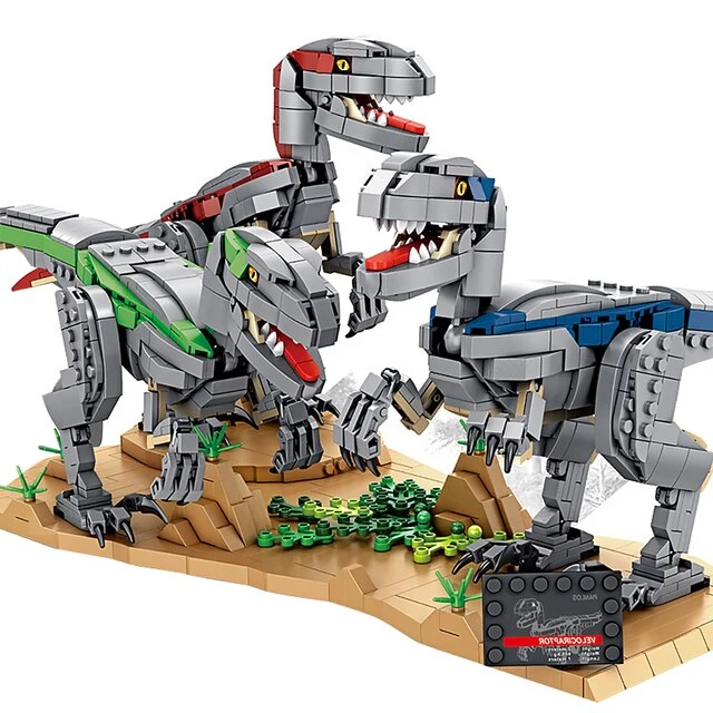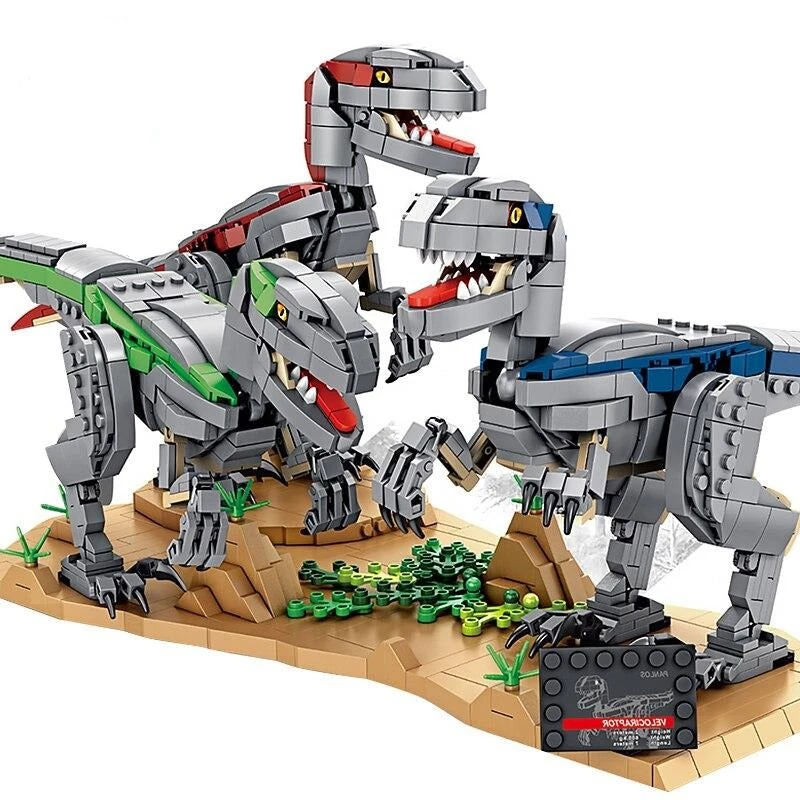Nun kannst du aus über 1.700 Spielsteinen drei richtig coole Raptoren selber zusammen bauen. Diese Raptoren stehen auf einer Platte, so dass du sie problemlos auch ins Regal stellen kannst. Die Gelenke der gefährlichen Fleischfresser sind beweglich. Wie du sicher schon weißt, jagen diese Dinosaurier immer nur im Rudel. Und dieses Trio ist gewiss nicht zum Spaß unterwegs!